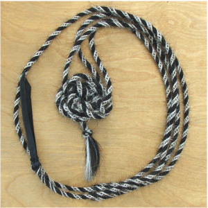 Bosal, Hanger, Mecate - die klassische Hackamore / Jaquima - können Sie sich hier zusammen stellen. Ich biete ausschließlich Mecaten aus Pferde-Mähnenhaar an. Mähnenhaar ist das traditionelle Material, stabil, schön und dauerhaft. Es erscheint manchen ein klein wenig "pieksig", ist jedoch weit weniger "stachelig" als Schweifhaar (welches in meinen Mecates keine Verwendung findet), und griffiger als sämtliche andere Materialien. "Wollmecaten" (wie Mohair, Alpaka, Schurwolle, etc.) erfordern ein festeres Fassen, also das Gegenteil des Gewünschten.