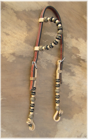 Leder / Rohhaut Einohr-Kopfstück / schw. Akzente