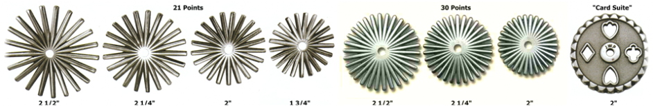 Alle Sporenräder (Rowels), Seitenteile (Bands) und Shanks sind frei miteinander kombinierbar (also auch anders als jeweils abgebildet).