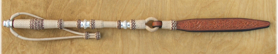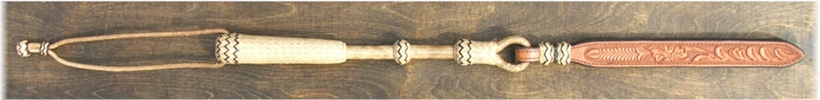 36 plait, Handschlaufe Rohhaut 8", Griff 15", Popper 11" Basket Tooling 310,-- € (in Vorbereitung)